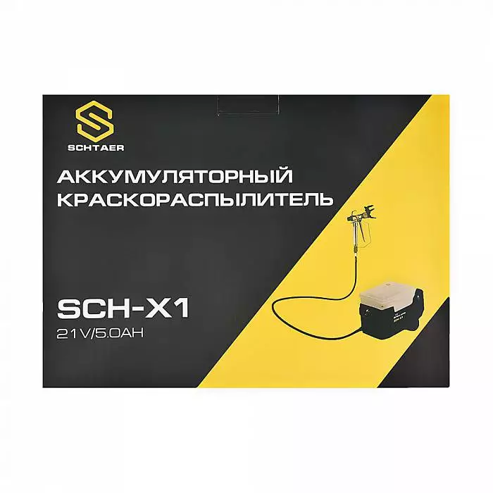 Аккумуляторный краскораспылитель SCHTAER SCH-X1 (21 В, 500 Вт, 1,1 л/мин, 170 бар) (арт. SCH-X1). Мощный и мобильный аккумуляторный краскораспылитель безвоздушного типа, предназначенный для профессионального нанесения красок, эмалей, лаков и других ЛКМ на различные поверхности