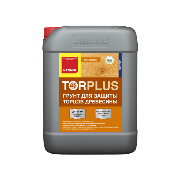 NEOMID TOR PLUS (cостав для защиты торцов древесины) защищает торцы обработанных и необработанных лесоматериалов (бревен, бруса, обрезной доски и других крупногабаритных пиломатериалов) различных пород от растрескивания в результате усушечных деформаций и загнивания.
