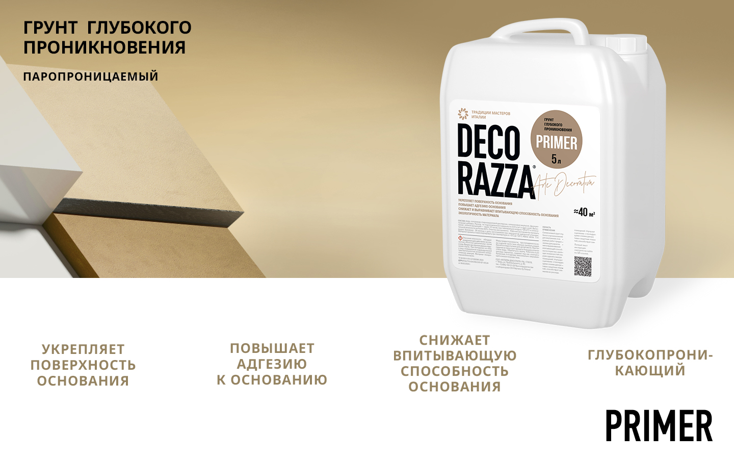 Выбрать цвет/характеристику и фасовку можно в форме выше. Оформив заказ легко и быстро, Вы можете купить Грунт глубокого проникновения PRIMER Decorazza в Чебоксарах с максимальной скидкой!