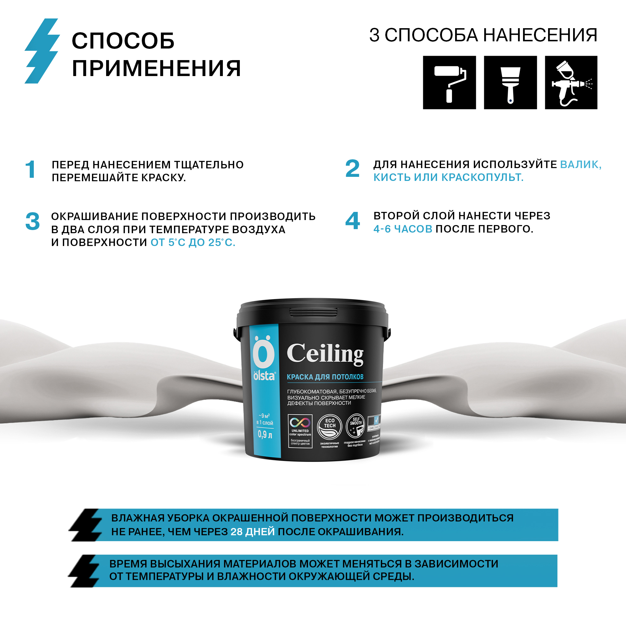 Выбрать цвет/характеристику и фасовку можно в форме выше. Оформив заказ легко и быстро, Вы можете купить Краска для потолков Ceiling OLSTA в Чебоксарах с максимальной скидкой!