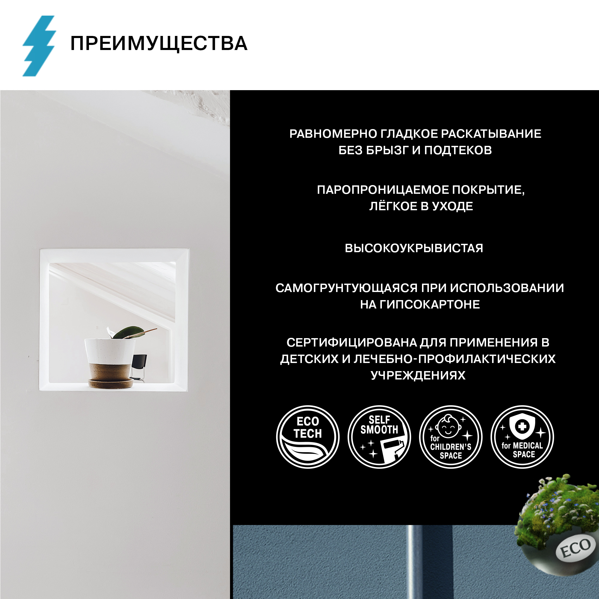 - Самогрунтующаяся при использовании на гипсокартоне