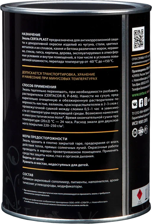 Кузнечная эмаль Церта-Пласт полуглянцевая от производителя Церта: предлагаем купить со склада в Чебоксарах.