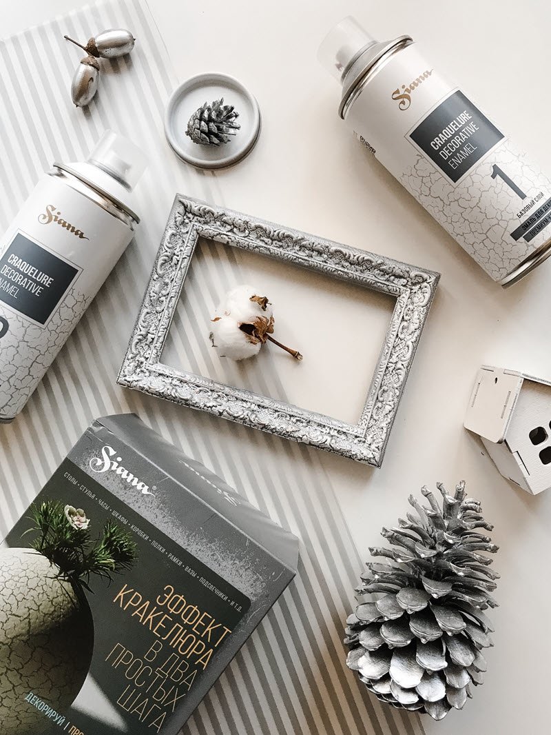 «Кракелюр» — эффект растрескавшейся краски. Ранее образовывался только с течением длительного времени. Набор для декора Siana Craquelure позволяет создать эффект трещин быстро и самостоятельно .