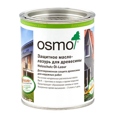 Защитное масло-лазурь для древесины Osmo Holzschutz Öl-Lasur подходит для окраски любых деревянных поверхностей для наружных работ.